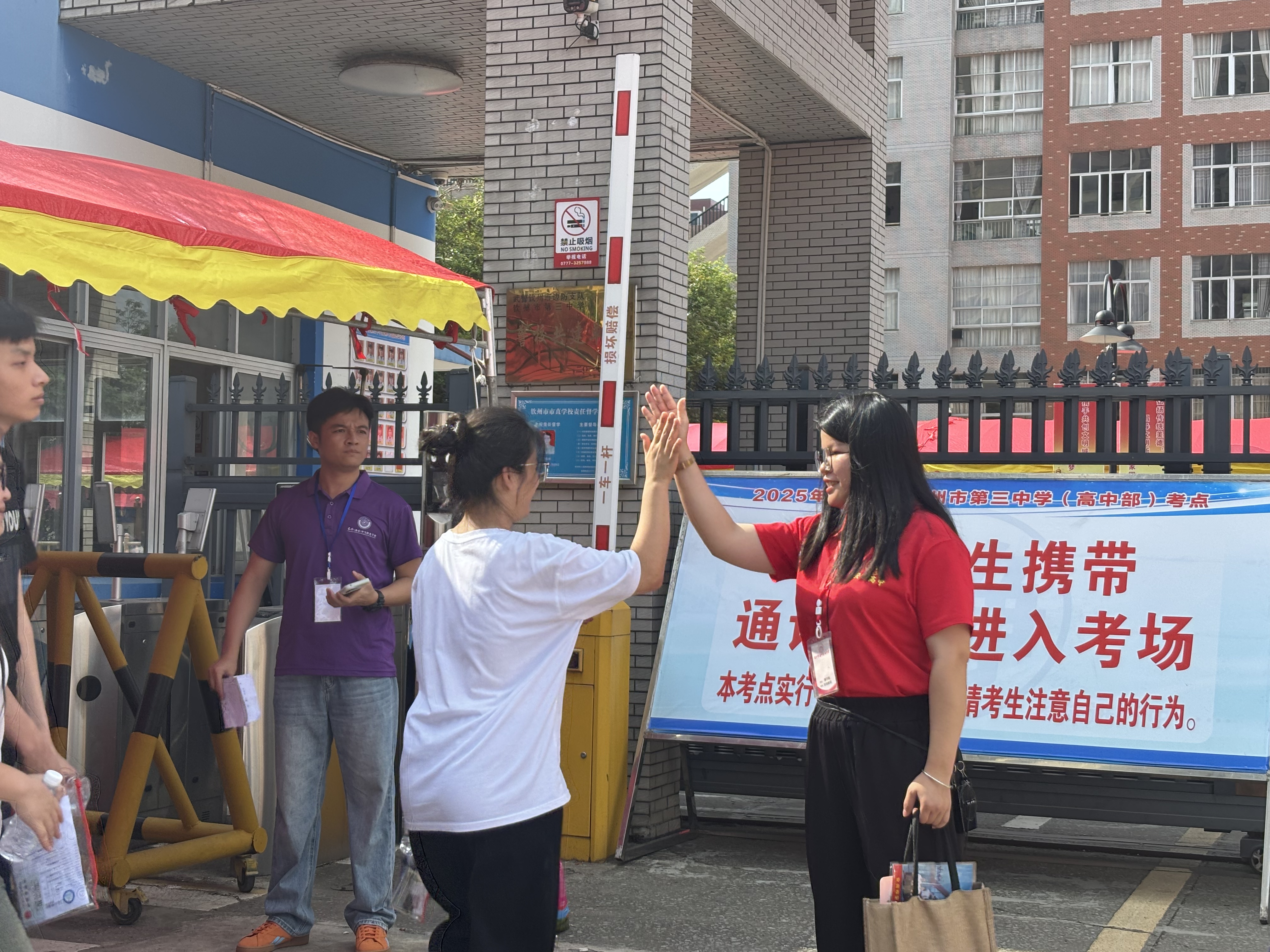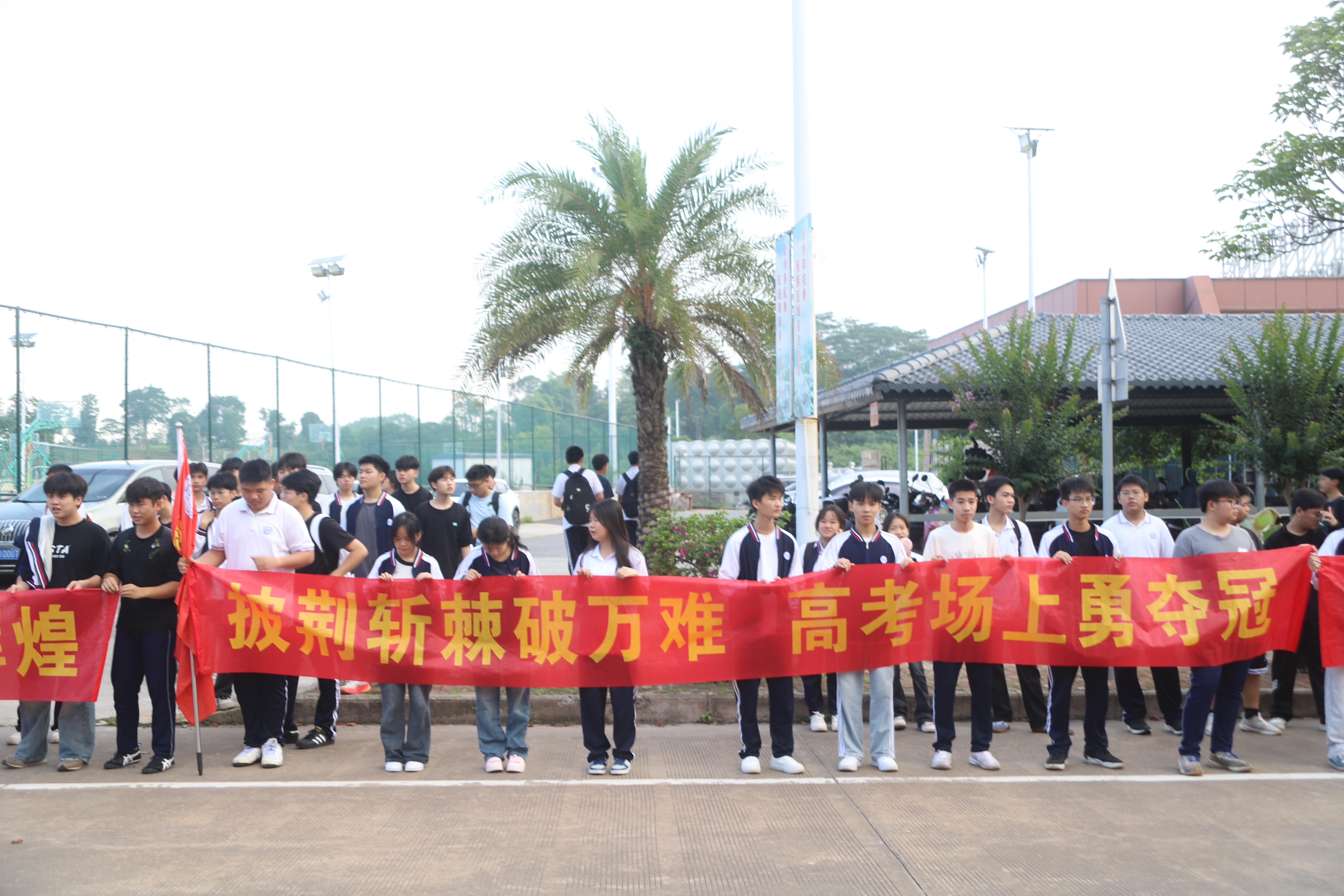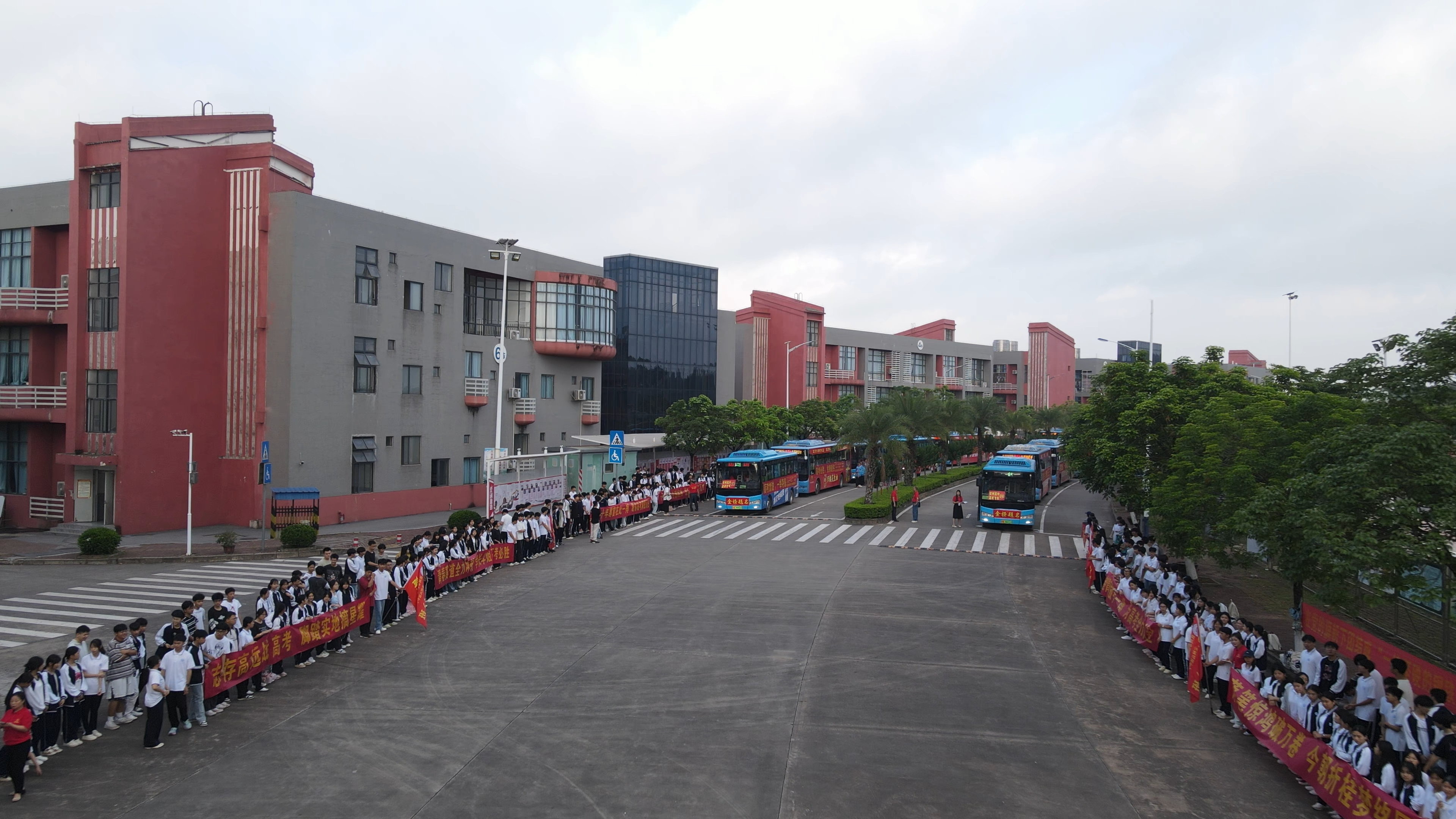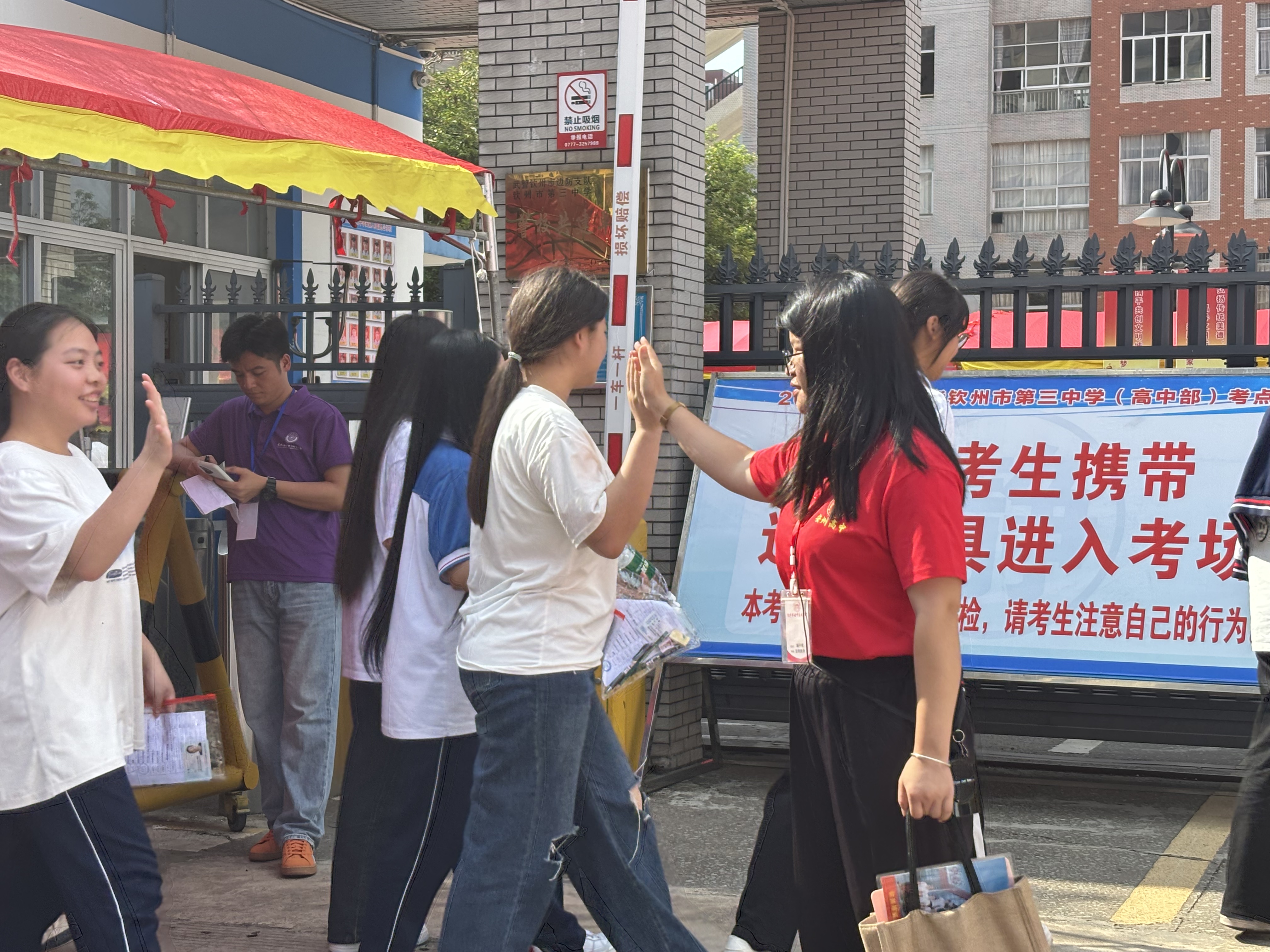 2025年6月7日早上7:20,钦州市第二中学教育集团安州高级中学在校内举办2025届高三学生高考欢送仪式,校道上高一高二的学弟学妹们和教职工们已做好准备,阳光下,一张张年轻的脸庞写满真诚与期待,仿佛在说:“你们奋力拼搏的身影,是我们未来(曾经)的模样。”