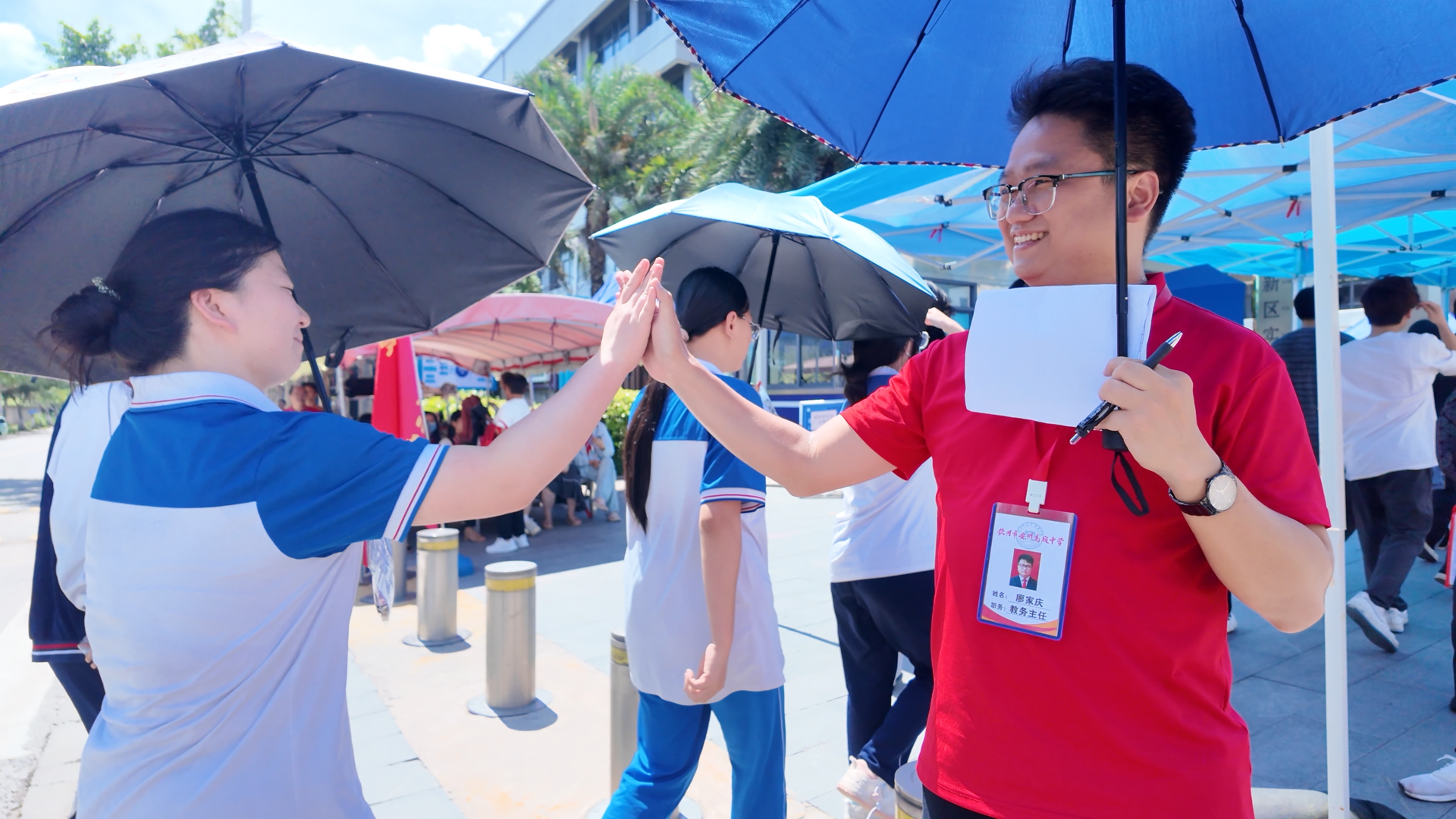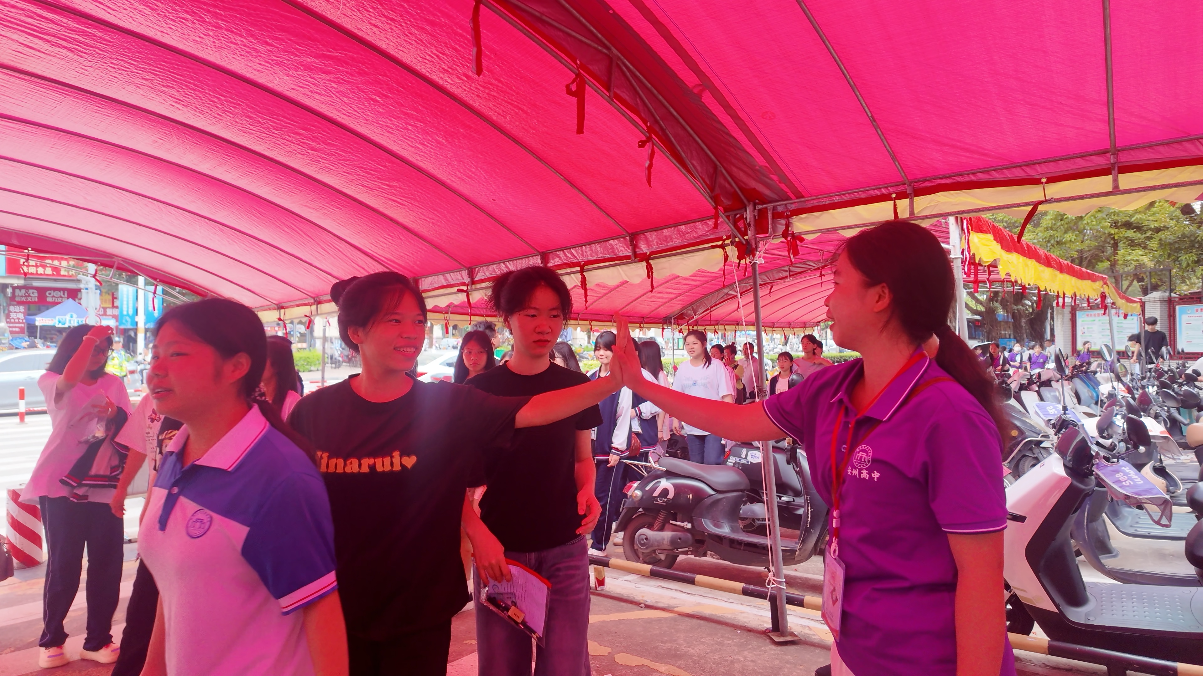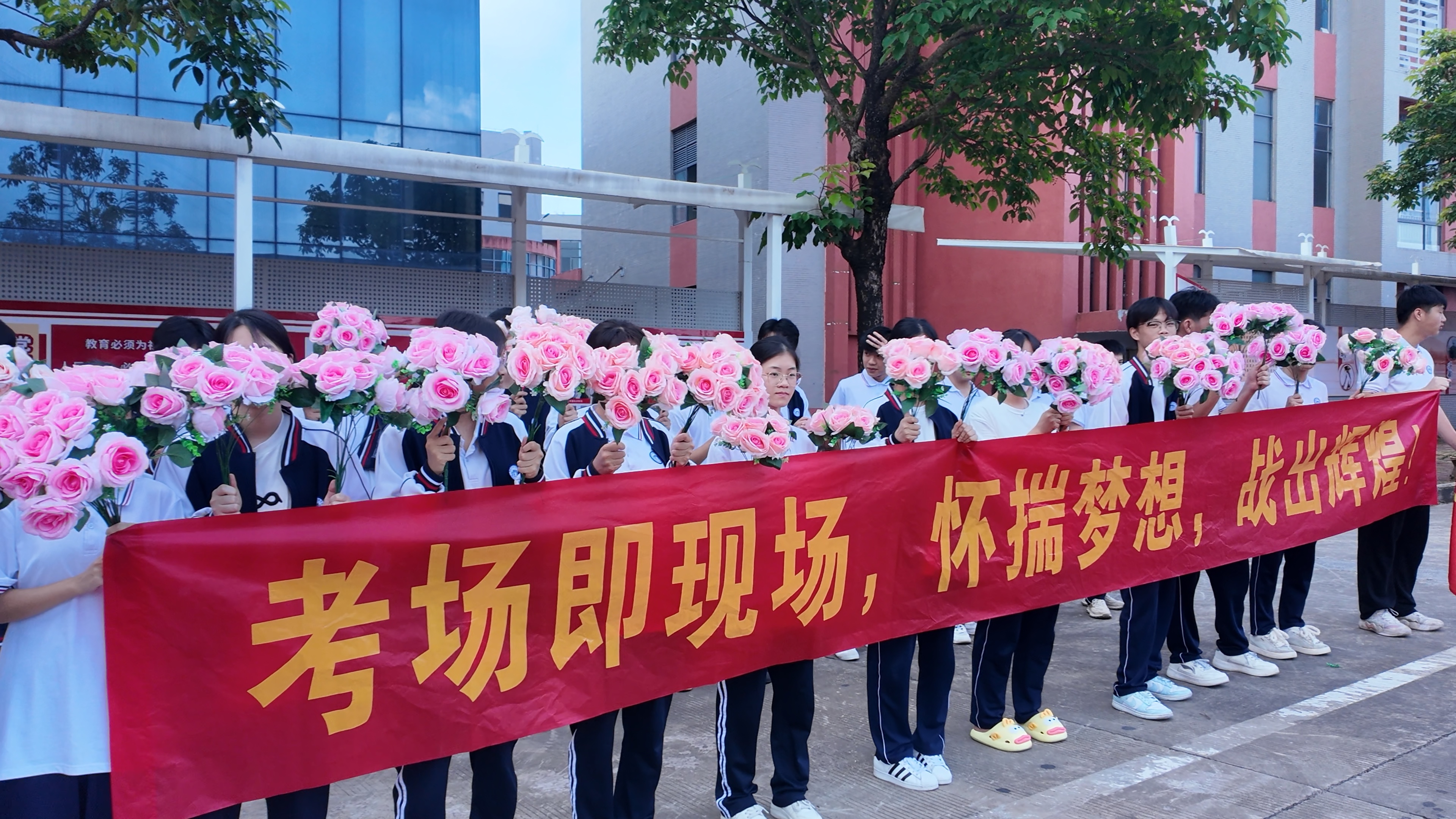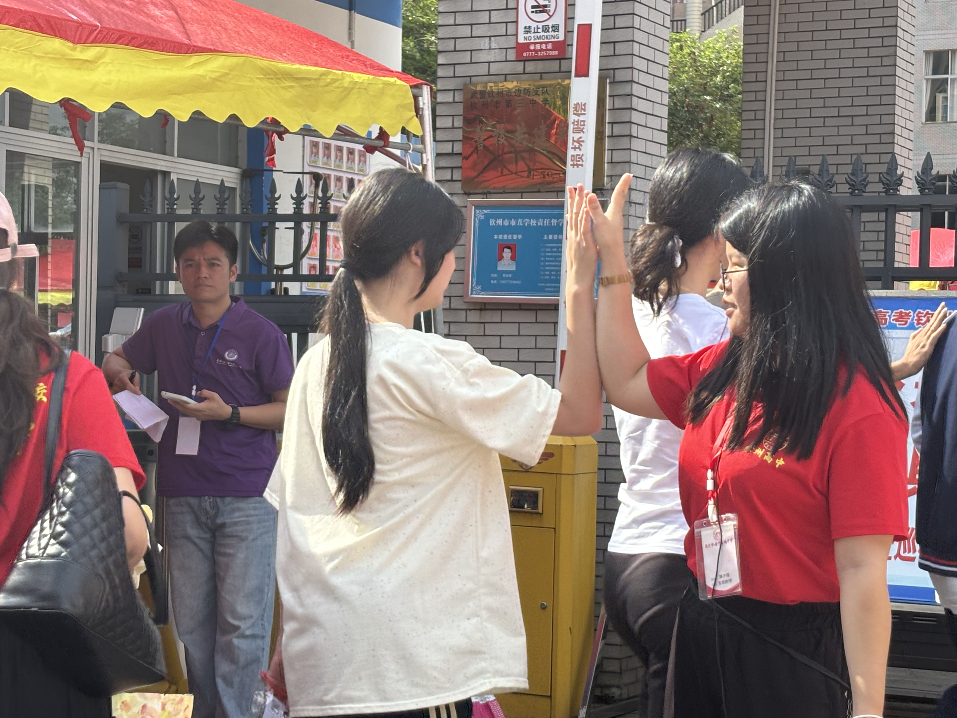 2025年6月7日早上7:20,钦州市第二中学教育集团安州高级中学在校内举办2025届高三学生高考欢送仪式,校道上高一高二的学弟学妹们和教职工们已做好准备,阳光下,一张张年轻的脸庞写满真诚与期待,仿佛在说:“你们奋力拼搏的身影,是我们未来(曾经)的模样。”