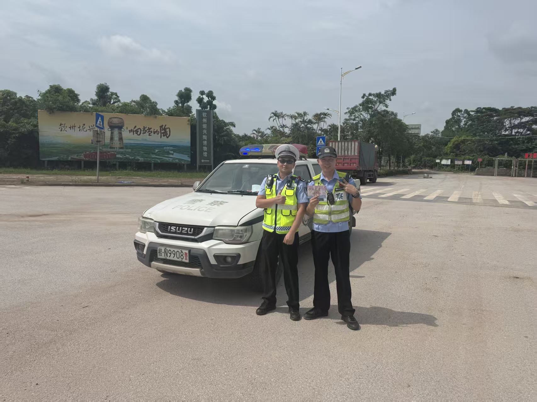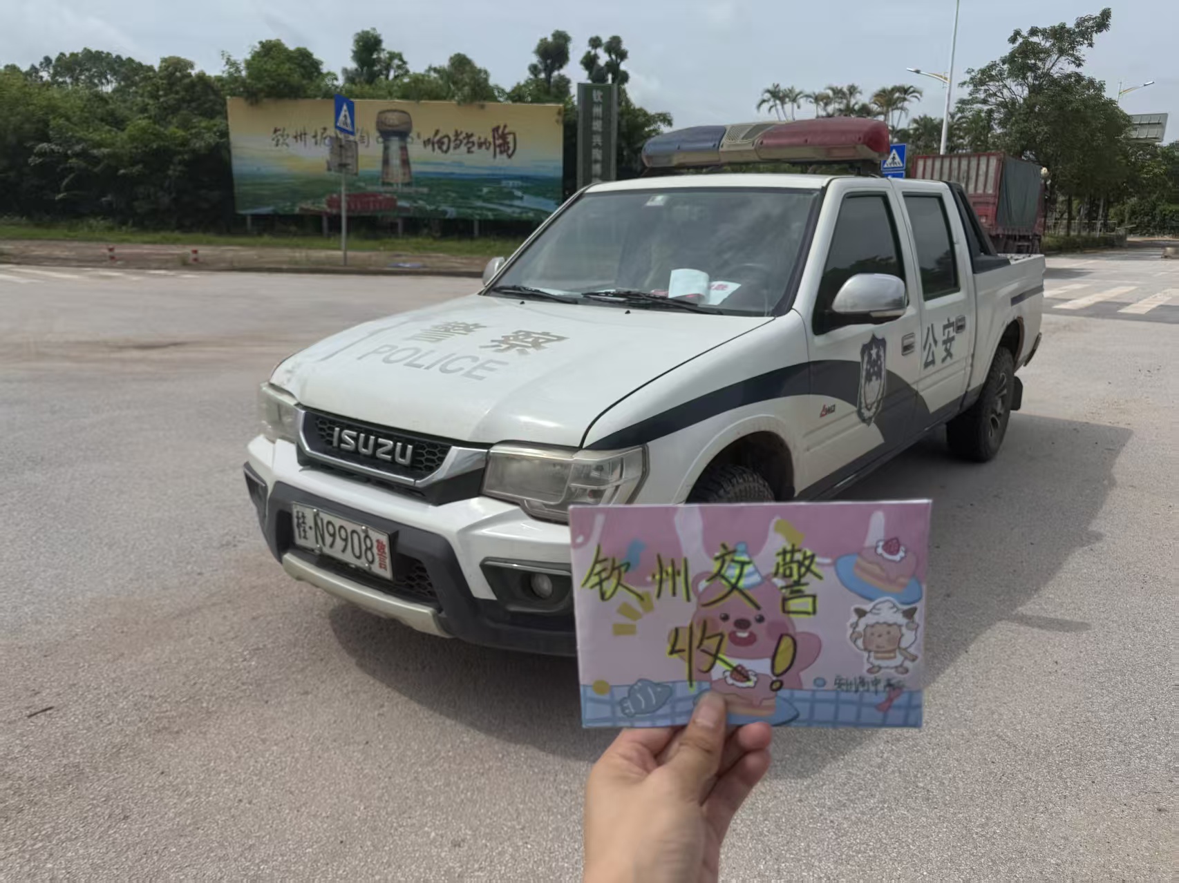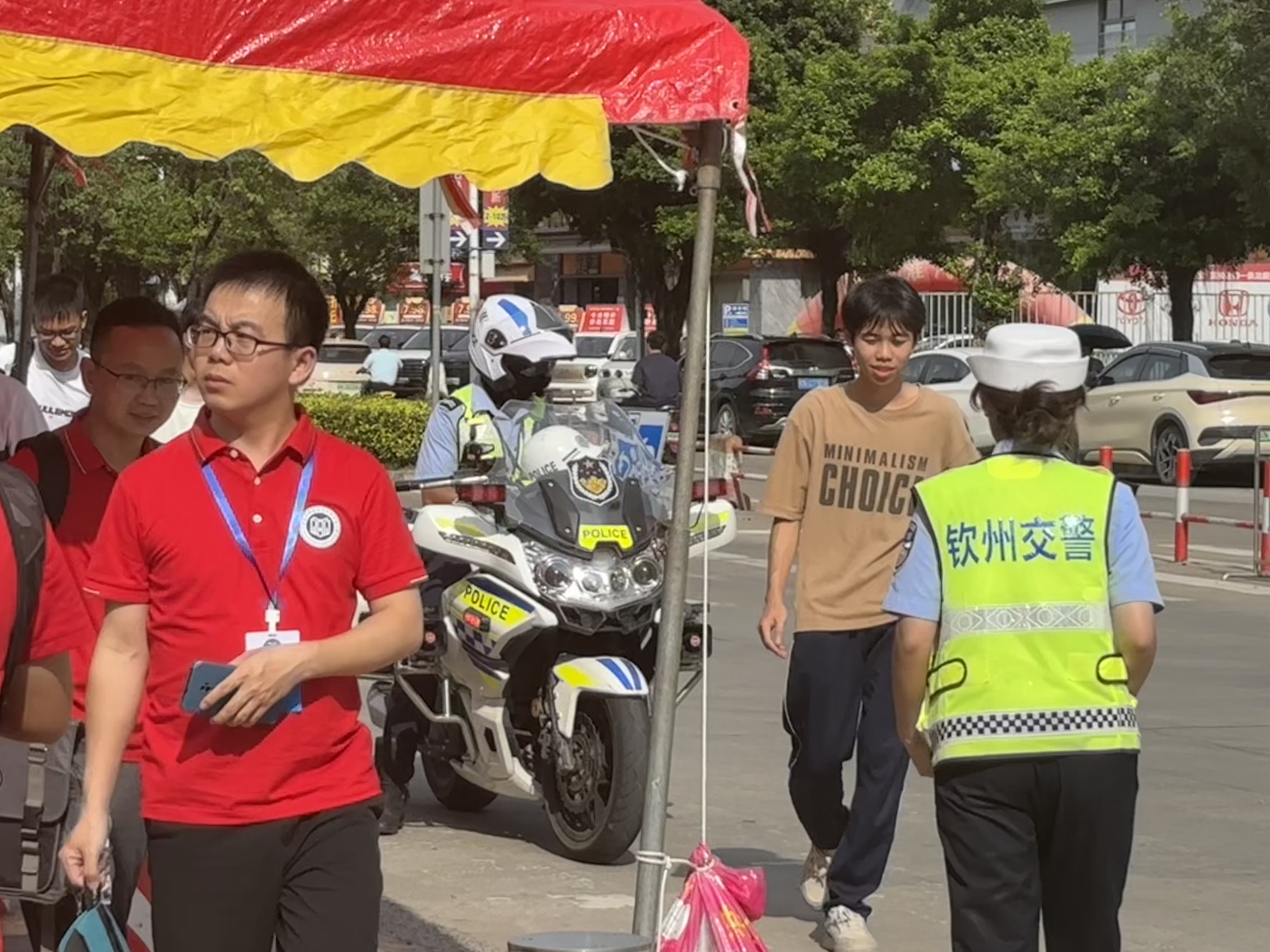 在这高考的三天里,钦州市公安局交警支队二大队黄国欢等民警为我们学校保驾护航,每次送考路上都能在路口看见他们高举不同的高考祝福,点燃我校高三学子的热情,高考结束后,我校高三22班同学们为他们送上感谢信和“奖状”,老师和高三同学们纷纷与他们合影留念,双向“奔赴”。