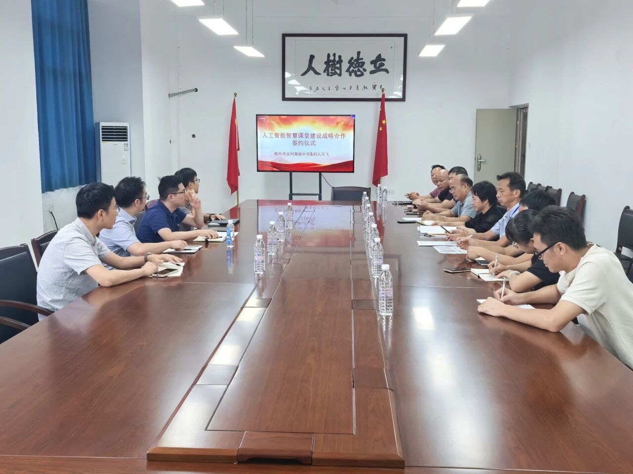 2025年9月,钦州市第二中学教育集团安州高级中学与全球人工智能领军企业——科大讯飞正式签署战略合作协议,标志着我校在教育数字化与智能化转型道路上迈出关键一步。此次合作是安州高中积极响应国家教育数字化战略行动、推动教育教学深度变革的重要举措。学校将依托科大讯飞在人工智能领域的核心技术,围绕"人工智能+教育"开展多维度、深层次的合作,共同打造智慧教育新生态。